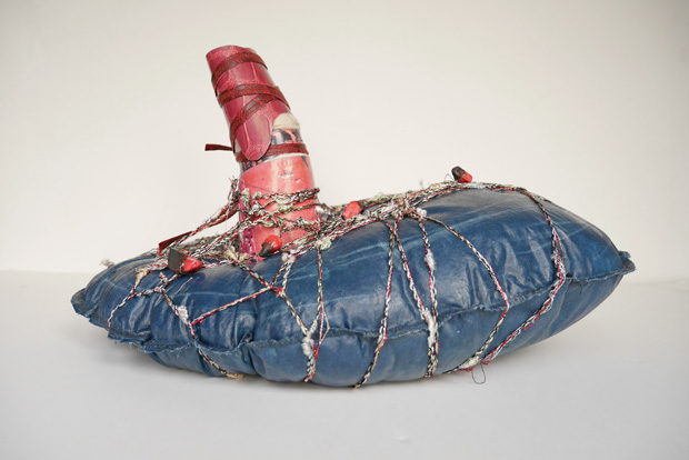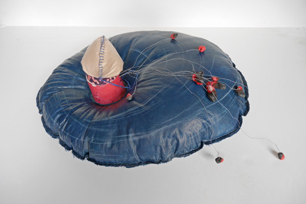 De objecten zijn gemaakt naar aanleiding van de tentoonstelling Blauw-Druck in de Deventer Bergkerk in 2015.